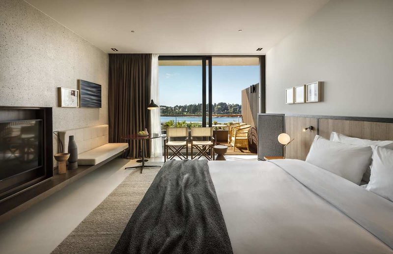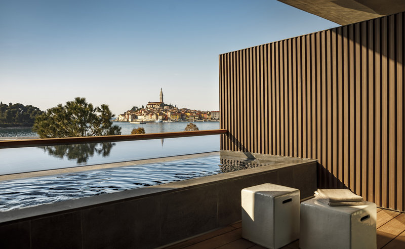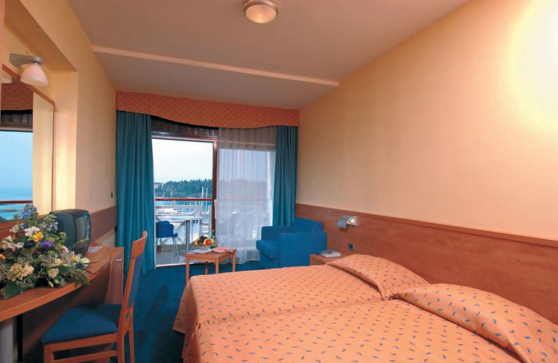 This hotel is situated in a stunning Istrian town which stands out for its beauty and historical heritage. It is located away from the hustle and bustle of the city, but still near the town centre. It is just off the beach, immersed in the pleasant climate and the scents of the local vegetation. The hotel and its terrace windows enjoy a view of the small harbour teeming with boats and yachts, the unusually attractive island of Sveta Katarina opposite the hotel and further out to the old town centre and the soothing open waters in the distance. Guests can easily reach the Zlatni Rat forested park and the restaurants, pubs, shops and public transport of Rovinj on a short walk. Guests may also want to visit the city of Pula, which is located around 30 km away.